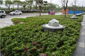 綠化帶中可見多套光導照明系統(tǒng),這是室外的采光罩,照進室內(nèi)的光線就是通過這一個一個光滑透亮的采光罩收集的,獨特的隔離紫外線和紅外線功能保證了室內(nèi)光線的舒適和安全。