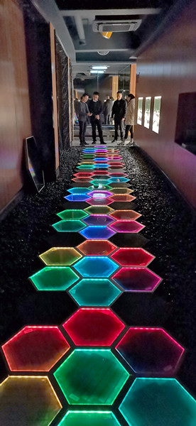 來訪人員還親身感受了下光能寶盒的承載、夜間景觀亮化效果;行人走到哪里,哪里就發(fā)光,較符合現(xiàn)代人喜歡娛樂的特性!