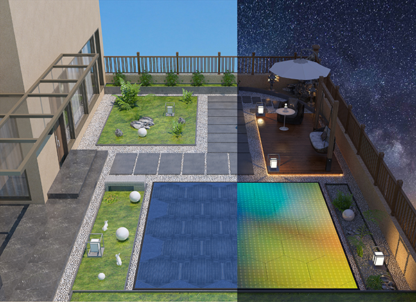 而現(xiàn)在,我們推出了別墅專用光能發(fā)電地磚,表面采用鋼化防滑玻璃,每平方米承重1噸,業(yè)主可以在上面正?;顒?dòng),將光伏發(fā)電系統(tǒng)與地磚融為一體,既美觀又實(shí)用。