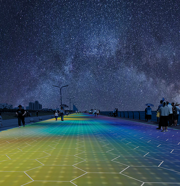 光能寶盒發(fā)電地磚夜間景觀亮化效果