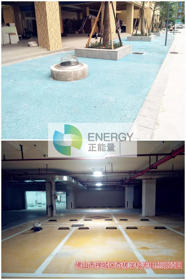 為展現(xiàn)學校的生態(tài)化、智能化、國際化。選用了“零污染、零排放”的佛山正能量光導照明系統(tǒng)。該系統(tǒng)所用材質(zhì)均為環(huán)??苫厥詹馁|(zhì);安裝于室外的采光罩采用德國拜耳優(yōu)質(zhì)PC材質(zhì)制成,抗沖擊、抗老化、抗污(因添加了納米抗污技術(shù),具有自動清潔功能)。在收集自然光的時候能將90%的有害紫外線及熱量過濾掉,在通過導光管傳送至漫射器。漫射器將光打散后傳送至室內(nèi)各個角落。使用全程無需市電,不受停電及天氣的影響。在天氣不佳時自帶的補光系統(tǒng)將及時補光,達到最佳照明。2-3年收回成本。質(zhì)量保用25年。